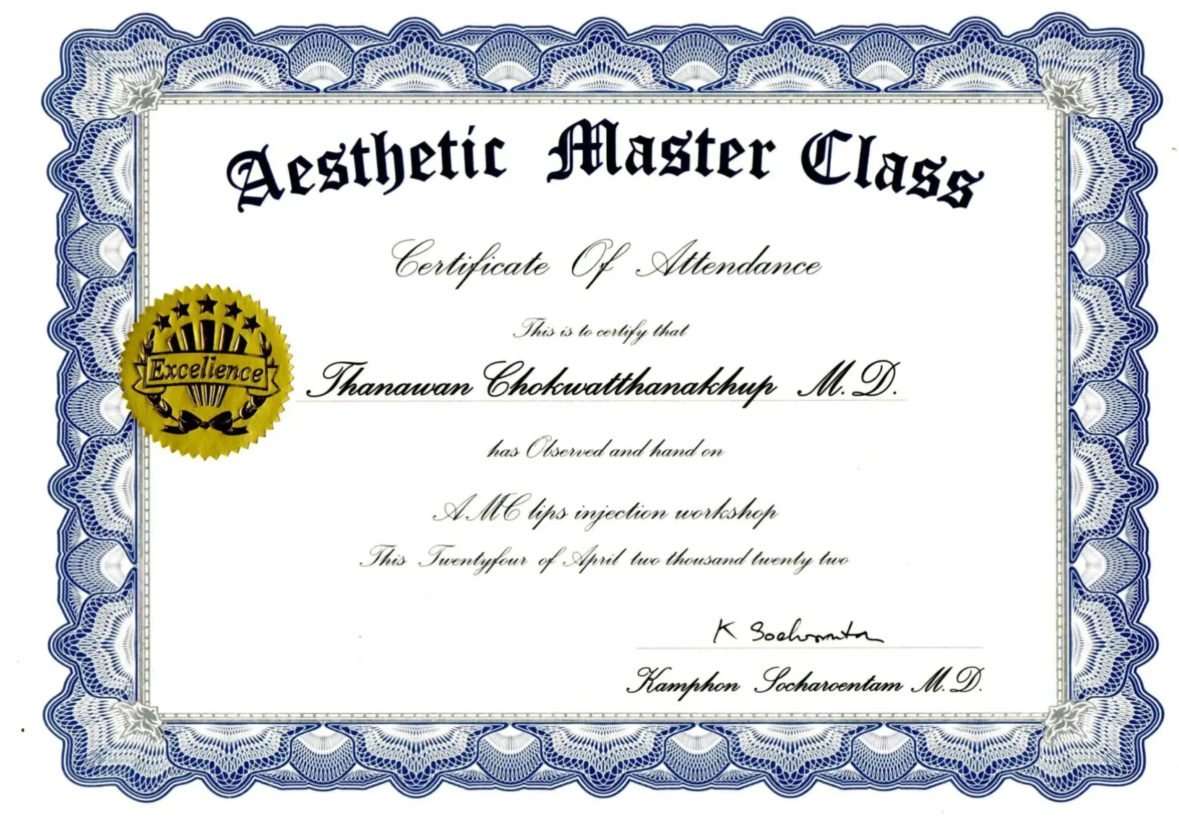 Certificate LG Aesthetics Academy : Classy Sexy Trendy Lips, Yvoire Navigator Workshop, Bangkok, Thailand