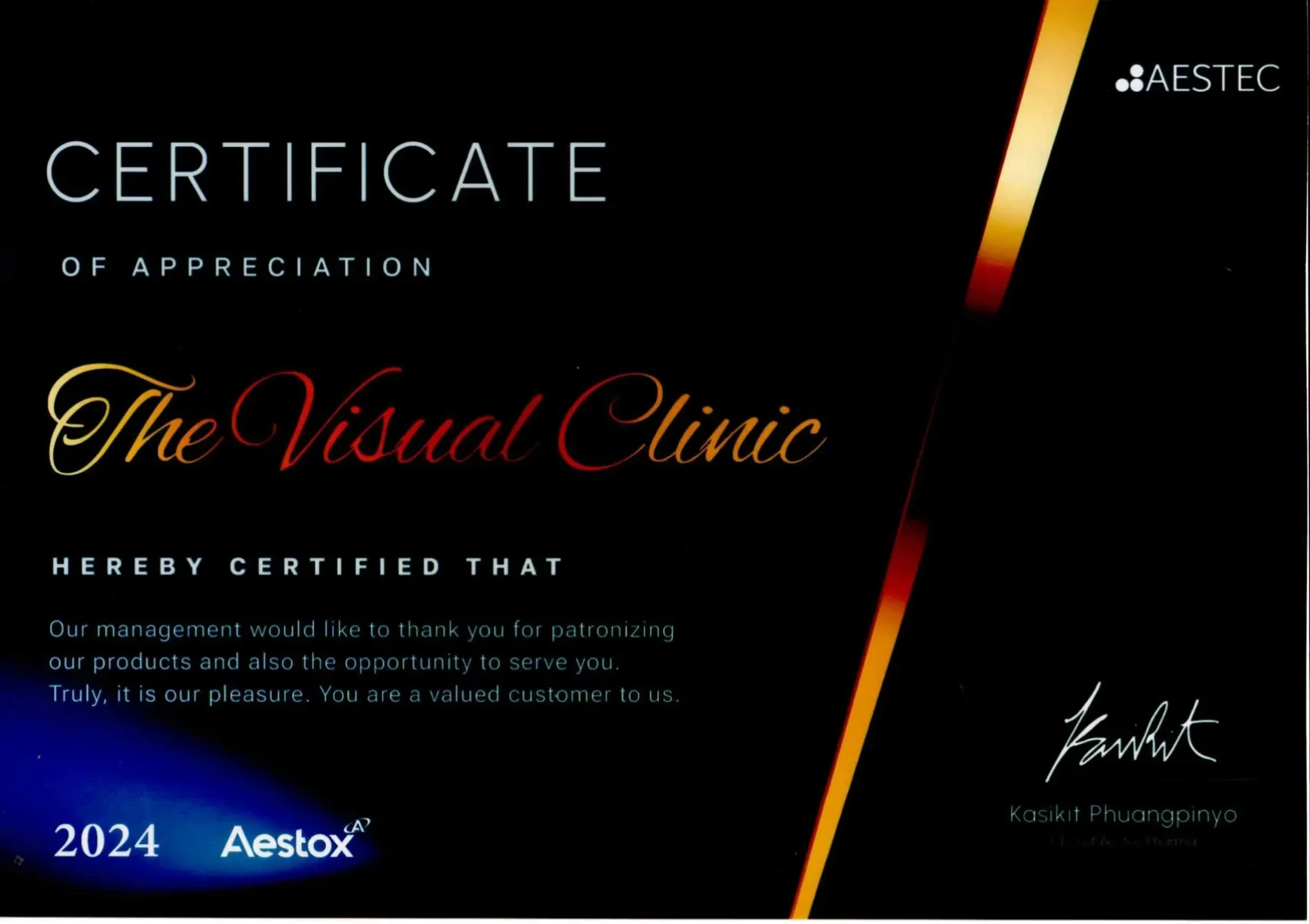Certificate the CICM 2024 Aesthetic Dermatology Conference: Hand-on Cadaver Workshop held by Chulabhorn International College of Medicine, Bangkok, Thailand